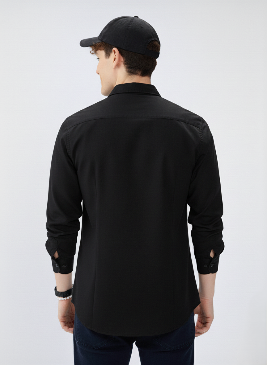 Make a bold statement with this Classic Black Cotton Shirt for Men from Fluxtyle — the ultimate blend of sophistication and comfort. Designed for the modern man, this shirt offers a sharp, polished look that never goes out of style.