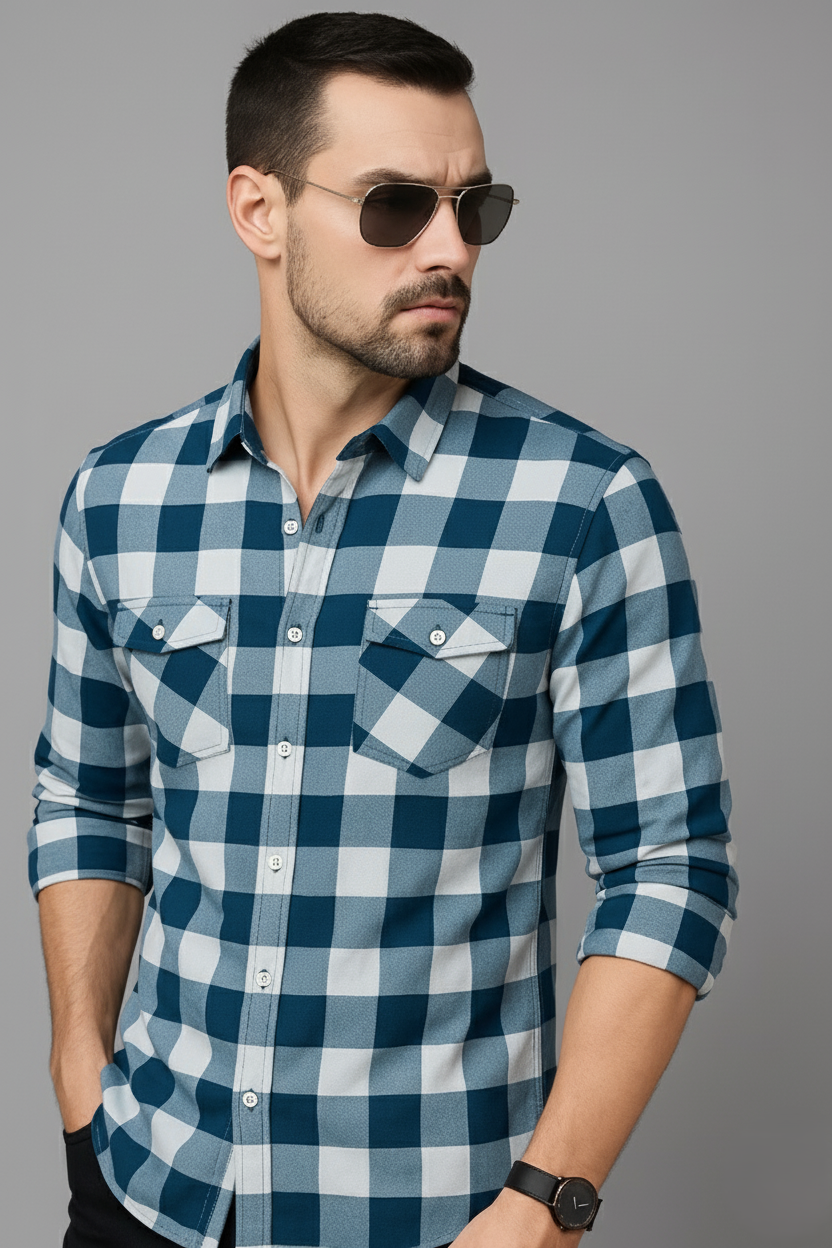 The bold check pattern adds a classic appeal, while the regular fit and button-down front keep it versatile for any occasion — from brunch dates and office meetings to casual hangouts. The full sleeves with adjustable cuffs and smart collar design make it an essential addition for every modern man.
